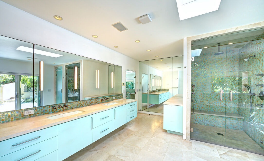 Double VanityFloating VanityWalk In ShowerFrameless Glass ShowerLarge MirrorSkylightsRecessed LightingUnder Cabinet LightingRainfall ShowerheadCustom MillworkHigh CeilingsAbundant Natural Light