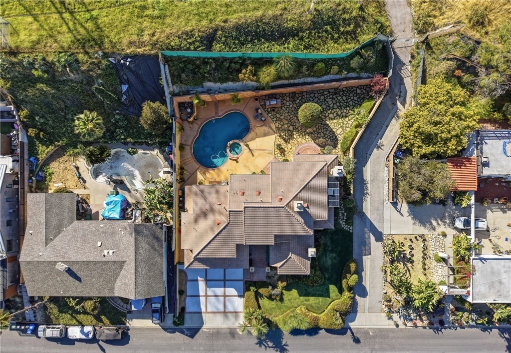 An exceptional resort-style pool area featuring a custom-shaped saltwater pool with integrated spa, surrounded by sophisticated hardscaping with decorative stone accents and mature landscape design. The space showcases high-end outdoor living with a pergola-covered lounge area, professional-grade landscape lighting, and meticulous attention to privacy and flow, exemplifying modern luxury residential design.