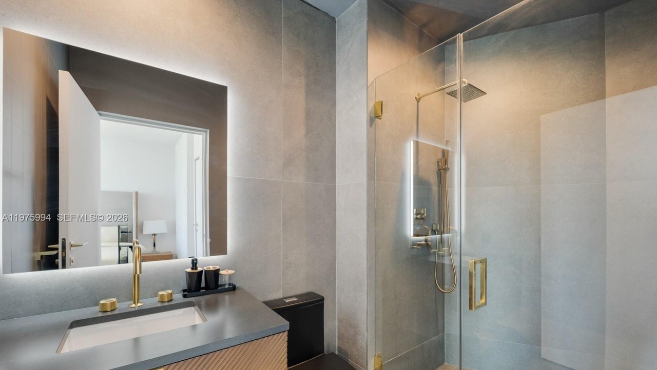 Floating VanityWalk In ShowerFrameless Glass Shower EnclosureRainfall ShowerheadLed MirrorDouble VanityCustom Millwork