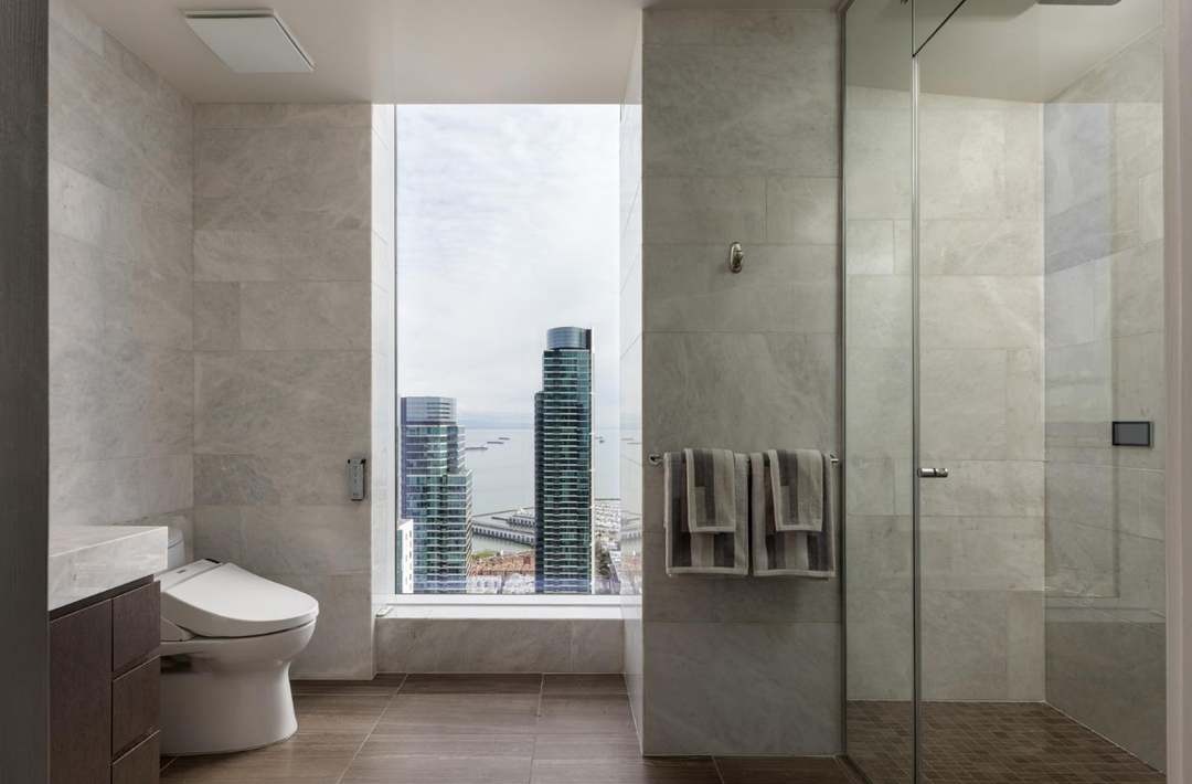Floor To Ceiling WindowsWalk In ShowerFloating VanityFrameless Glass Shower EnclosureCity ViewHigh CeilingsAbundant Natural LightOpen Layout